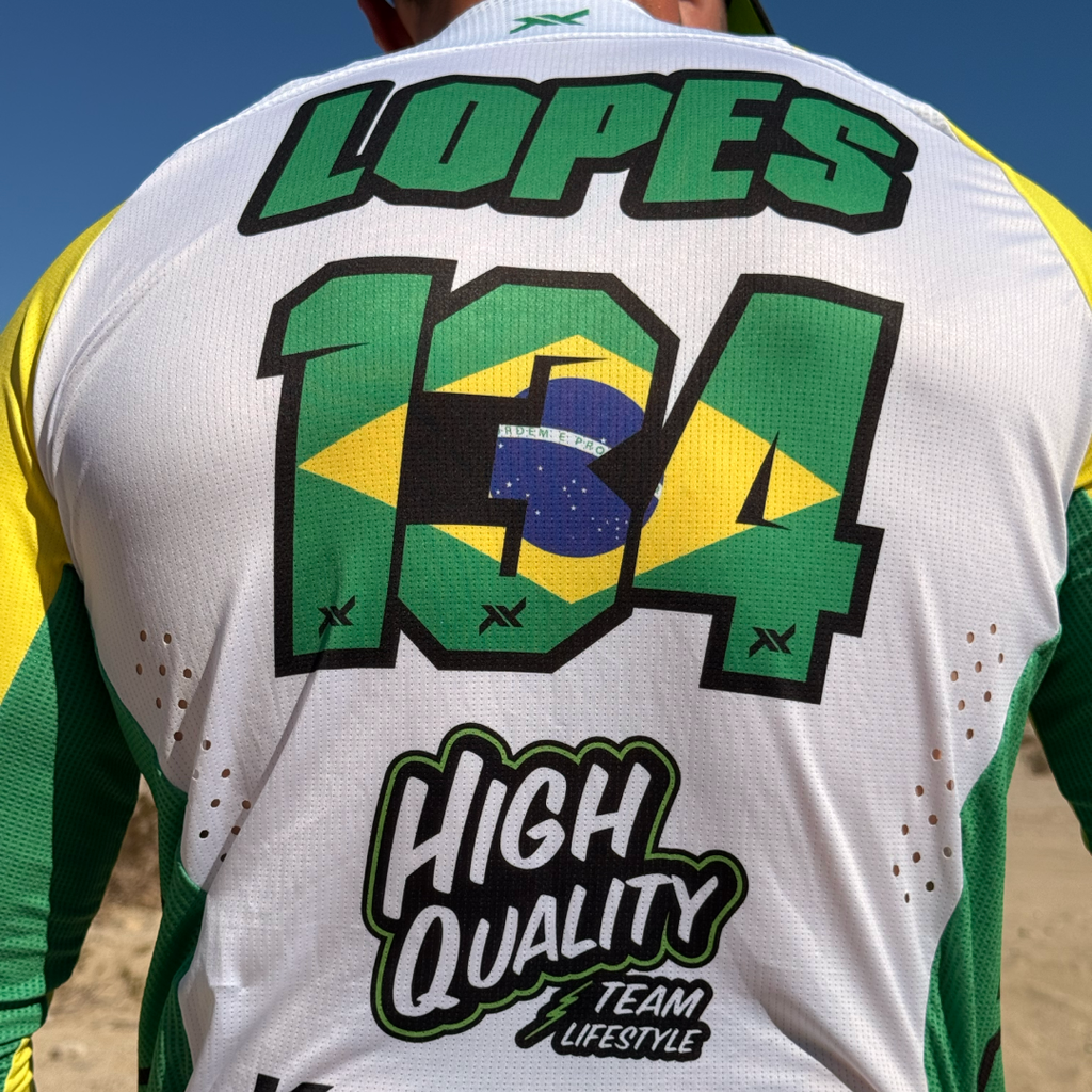 O Conjunto Pátria foi desenvolvido pela Mattos para quem vive a adrenalina das trilhas e carrega o orgulho de representar o Brasil em cada curva.
